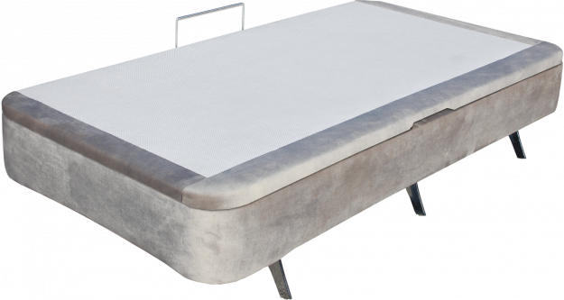 Características modelo: Canapé abatible con estructura de hierro y doble bastidor de tubo laminado de 30x30x1,5 con refuerzos de unión. Tapa de tubo laminado y fondo sólido de aglomerado. Patas metálicas de altura 14 cm. Tapa tapizada en 3D o tela. Altura 22/23 e interior 12/13 cm Garantía 3 años.